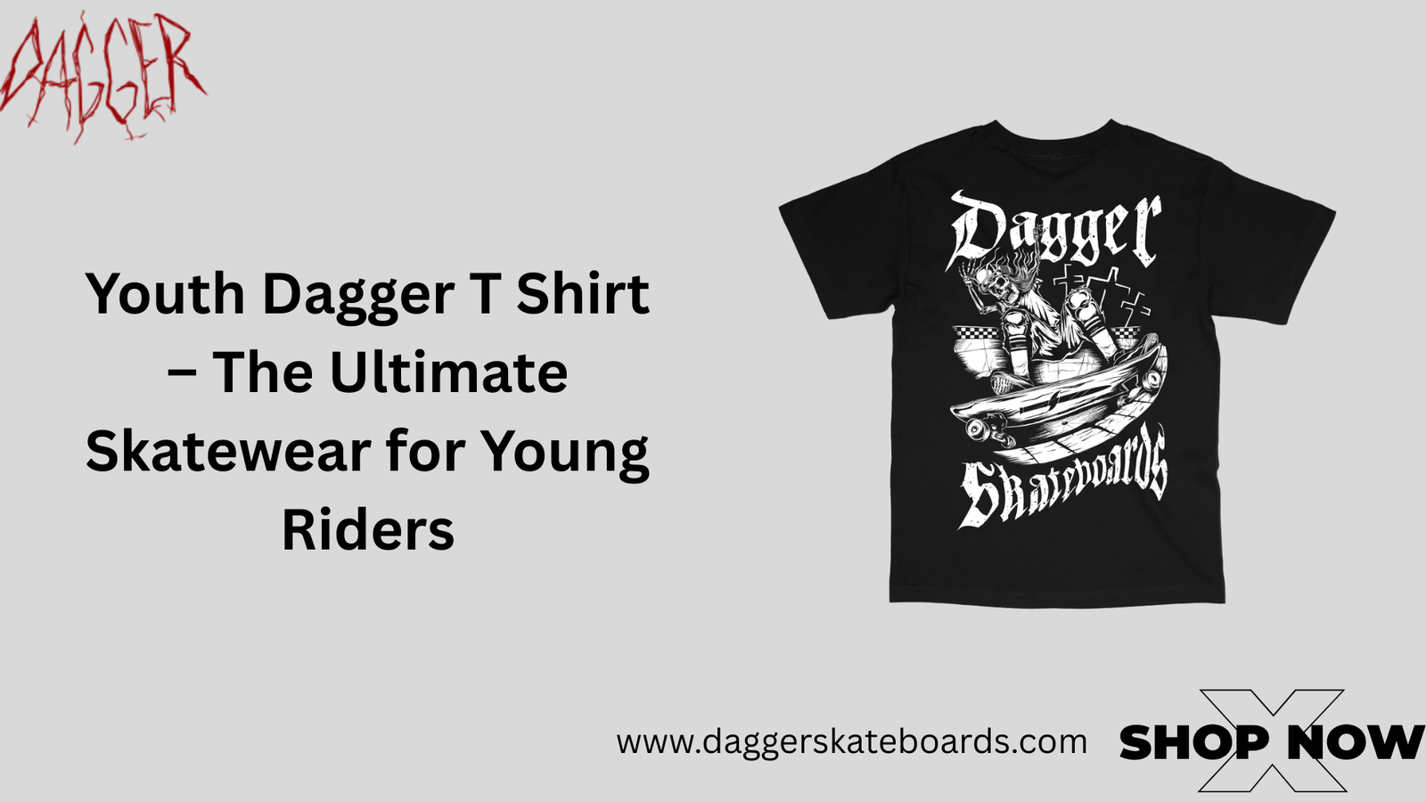 - Authentic Brand Design – Part of the Dagger Skateboards youth apparel line, including the Dagger Slashing T Shirt Youth and Youth Por Vida T-Shirt.